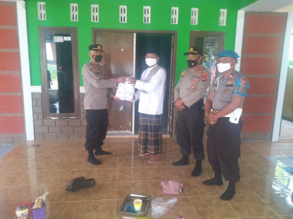 Majalengka – Kapolsek Jatitujuh Polres Majalengka IPTU Kenedi Joko Lelono didampingi Waka Polsek IPDA Joko Susanto beserta Anggota menyerahkan bantuan sosial berupa Masker kepada pondok pesantren Roudhotul Mubtadiin Desa Pasindangan Kecamatan Jatitujuh Kabupaten Majalengka, Minggu (5/9/2021).