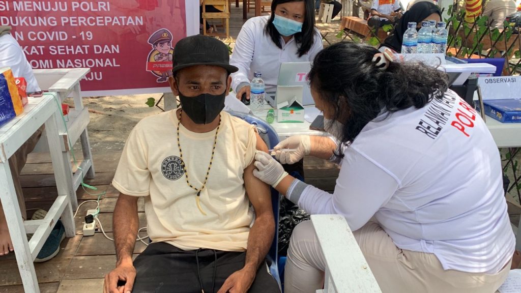 Jayapura – Bertempat di Warung Kombrof Pantai Hamadi Kota Jayapura telah dilaksanakan kegiatan Gebyar Vaksinasi Presisi yang dilaksanakan oleh Polresta Jayapura Kota dalam rangka mendukung percepatan vaksinasi di Papua, Sabtu (25/09).