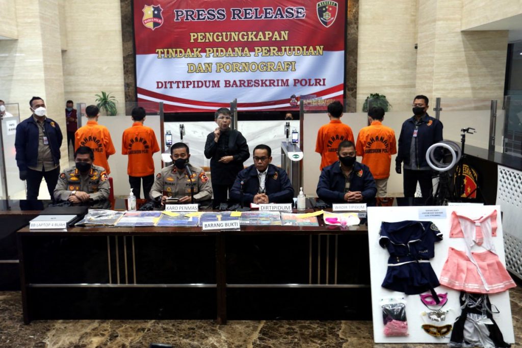 “Ini menggunakan satu aplikasi yang dimodifikasi yang namanya 19.love.me. Dalam praktiknya, karena ini melibatkan konten-konten pornoaksi, pelaku merekrut wanita yang dijadikan host,” ujar Direktur Tindak Pidana Umum (Dirtipidum) Bareskrim Polri Brigjen Andi Rian Djajadi, Selasa (26/10/2021).